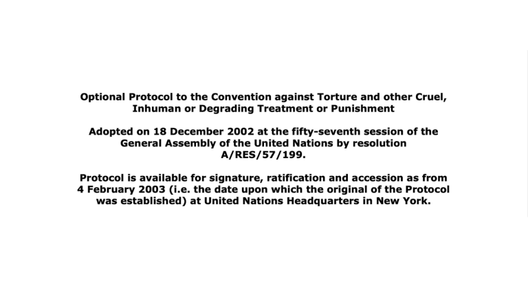 • Optional Protocol to the Convention against Torture and other Cruel, Inhuman or Degrading Treatment or Punishment