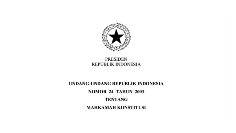• UU No. 24 Tahun 2003 tentang Mahkamah Konstitusi