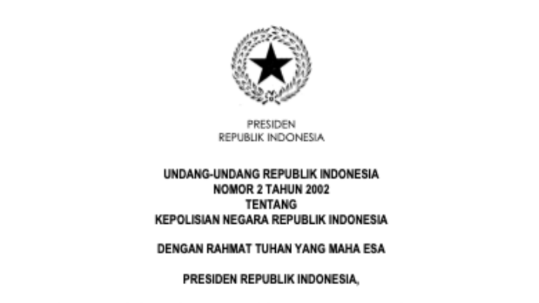 • UU No. 2 Tahun 2002 tentang Kepolisian Negara Republik Indonesia