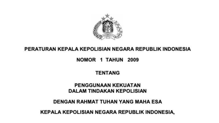 • Peraturan Kapolri No. 1 Tahun 2009 tentang Penggunaan Kekuatan dalam Tindakan Kepolisian